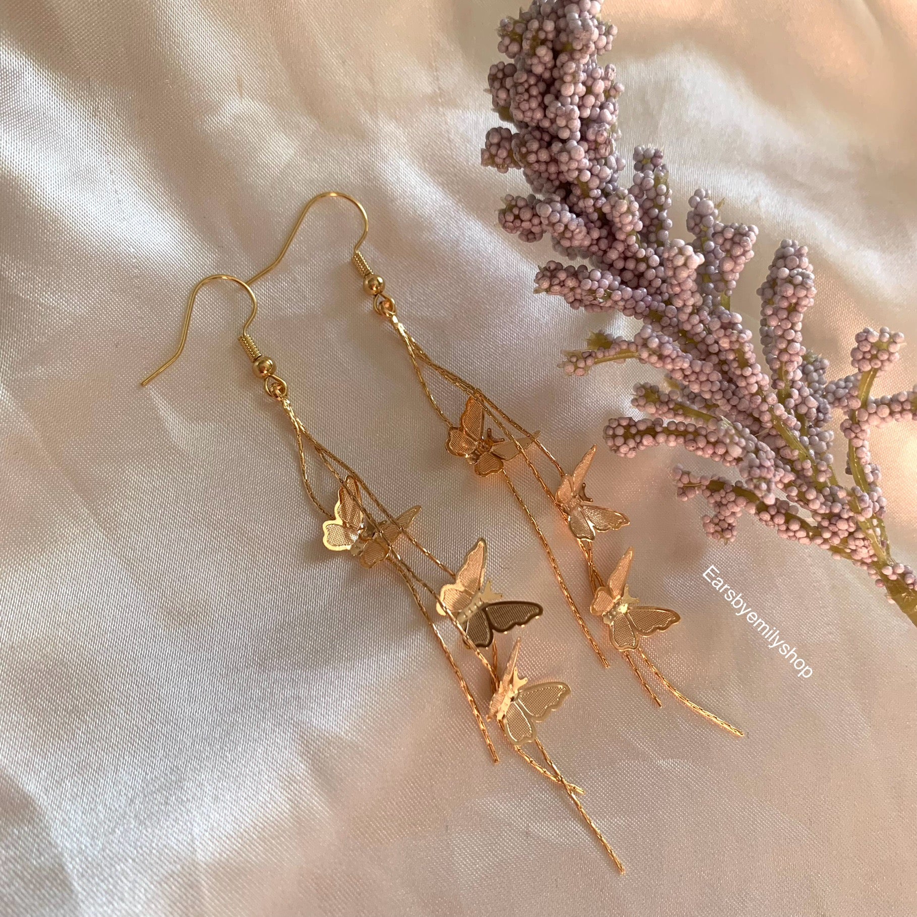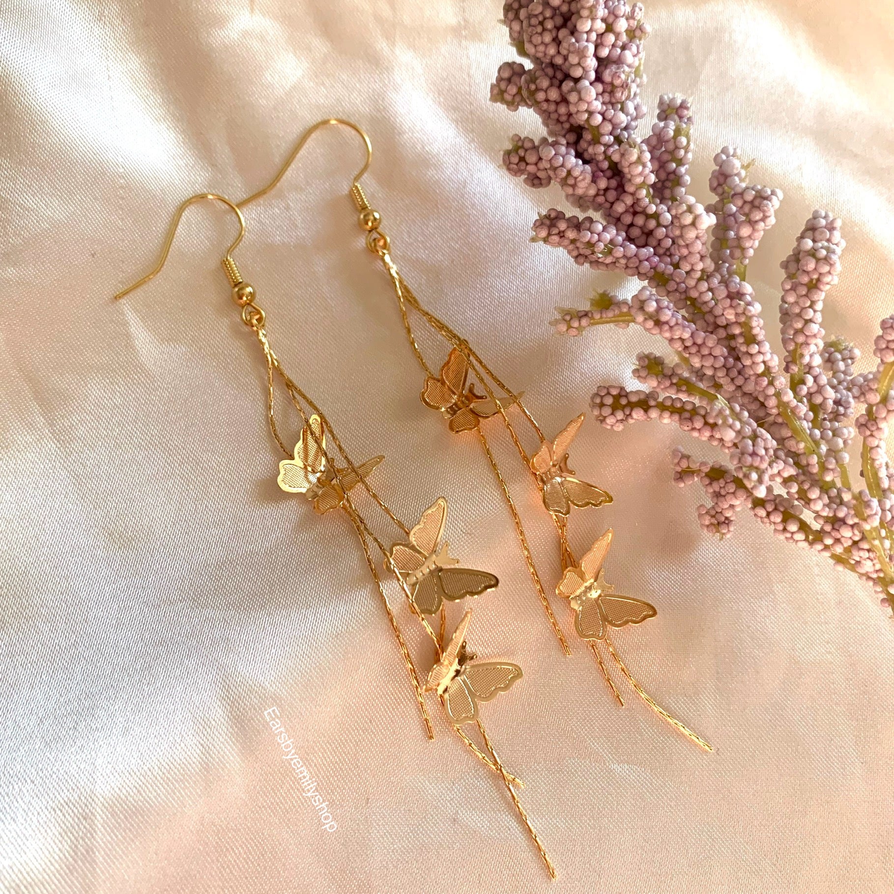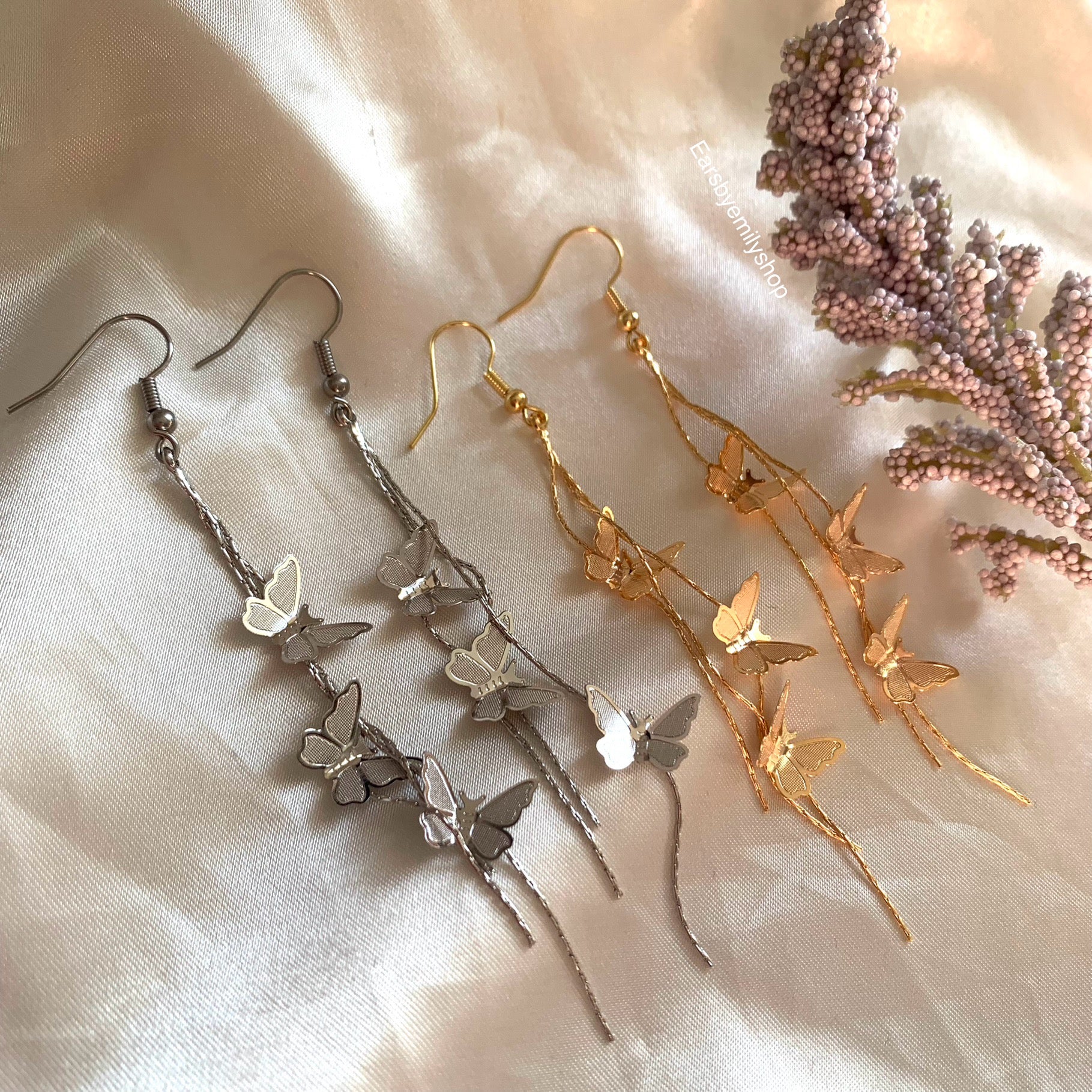 Beautiful 18k gold or silver plated butterfly trio chain earrings.
