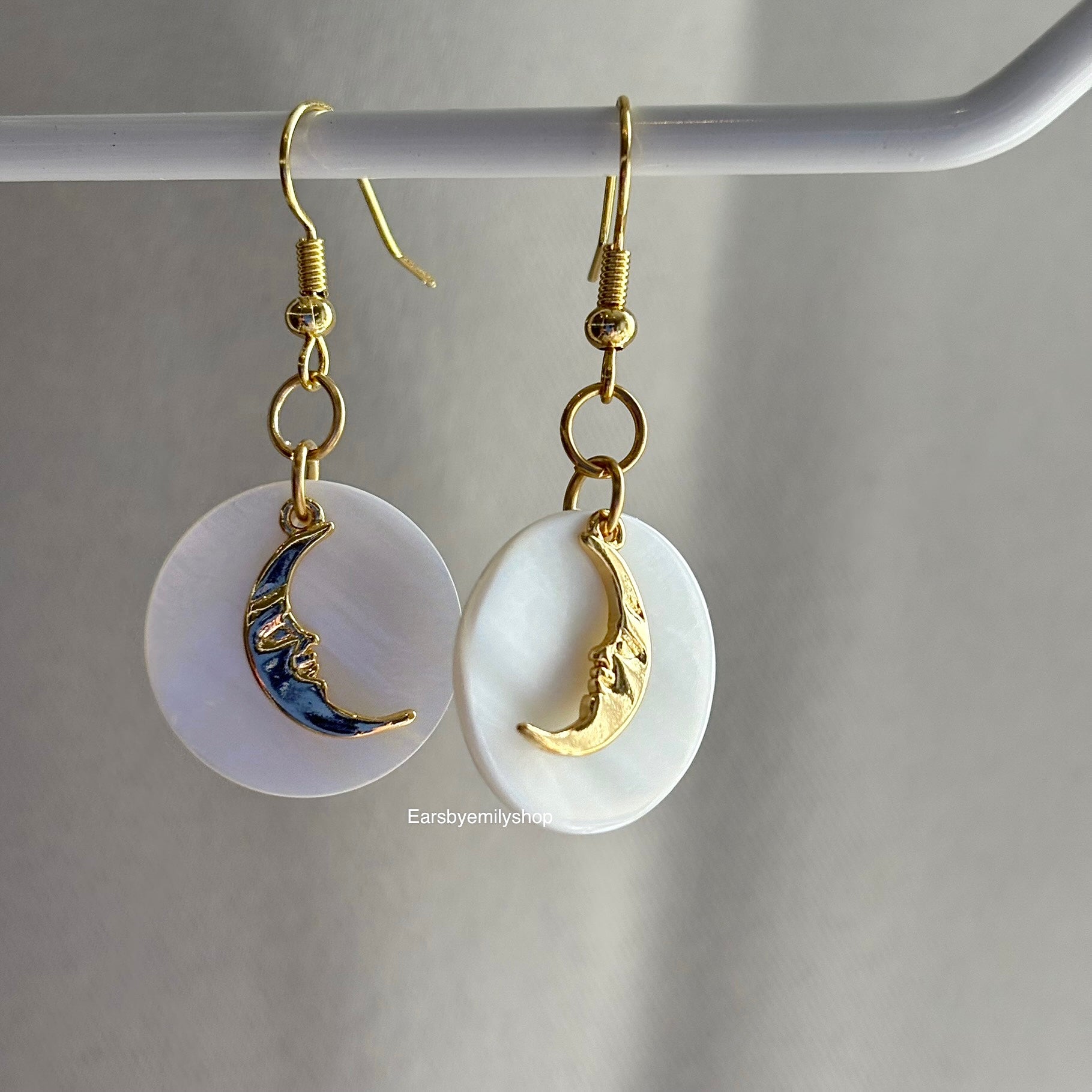18k Gold plated moon face on shell disc earrings