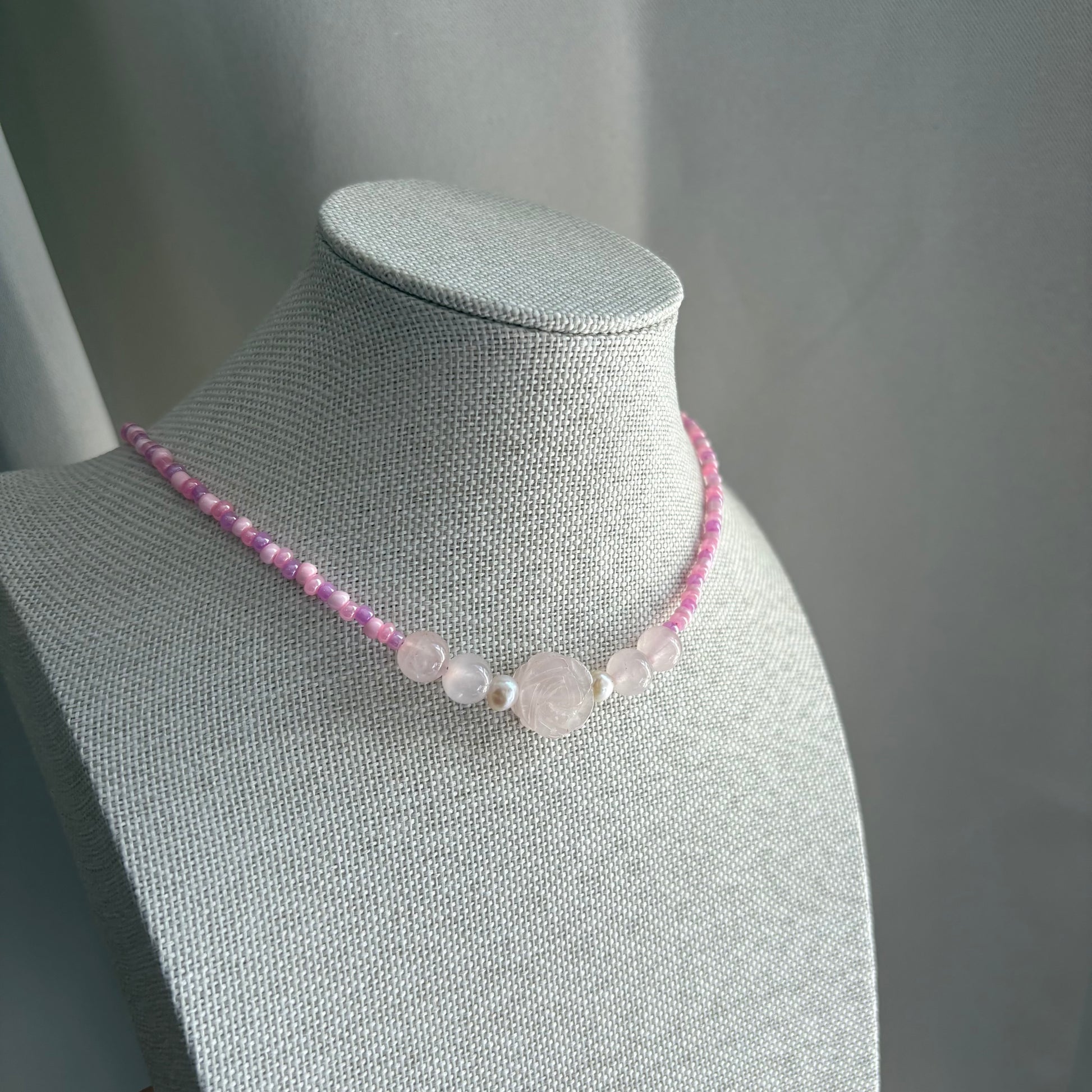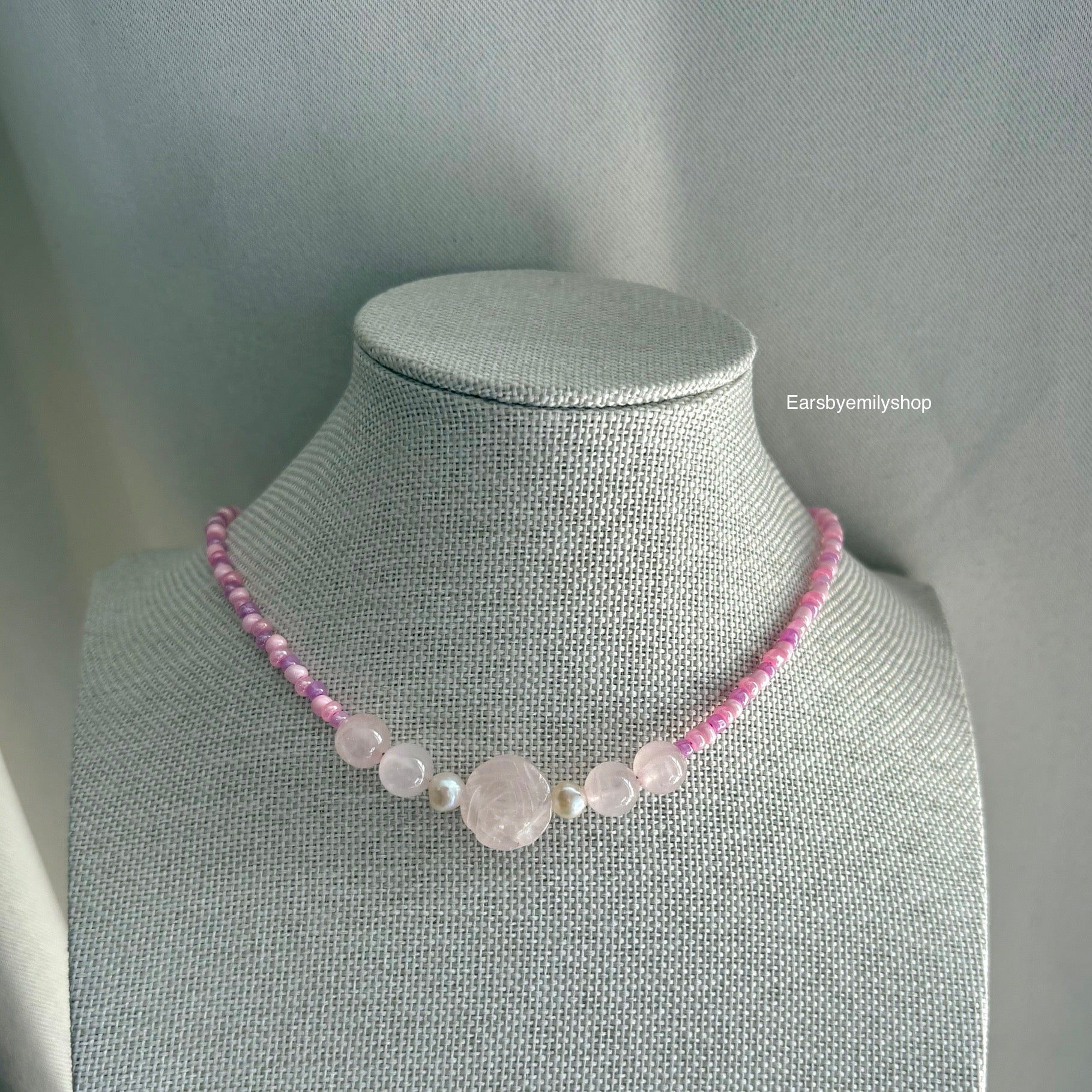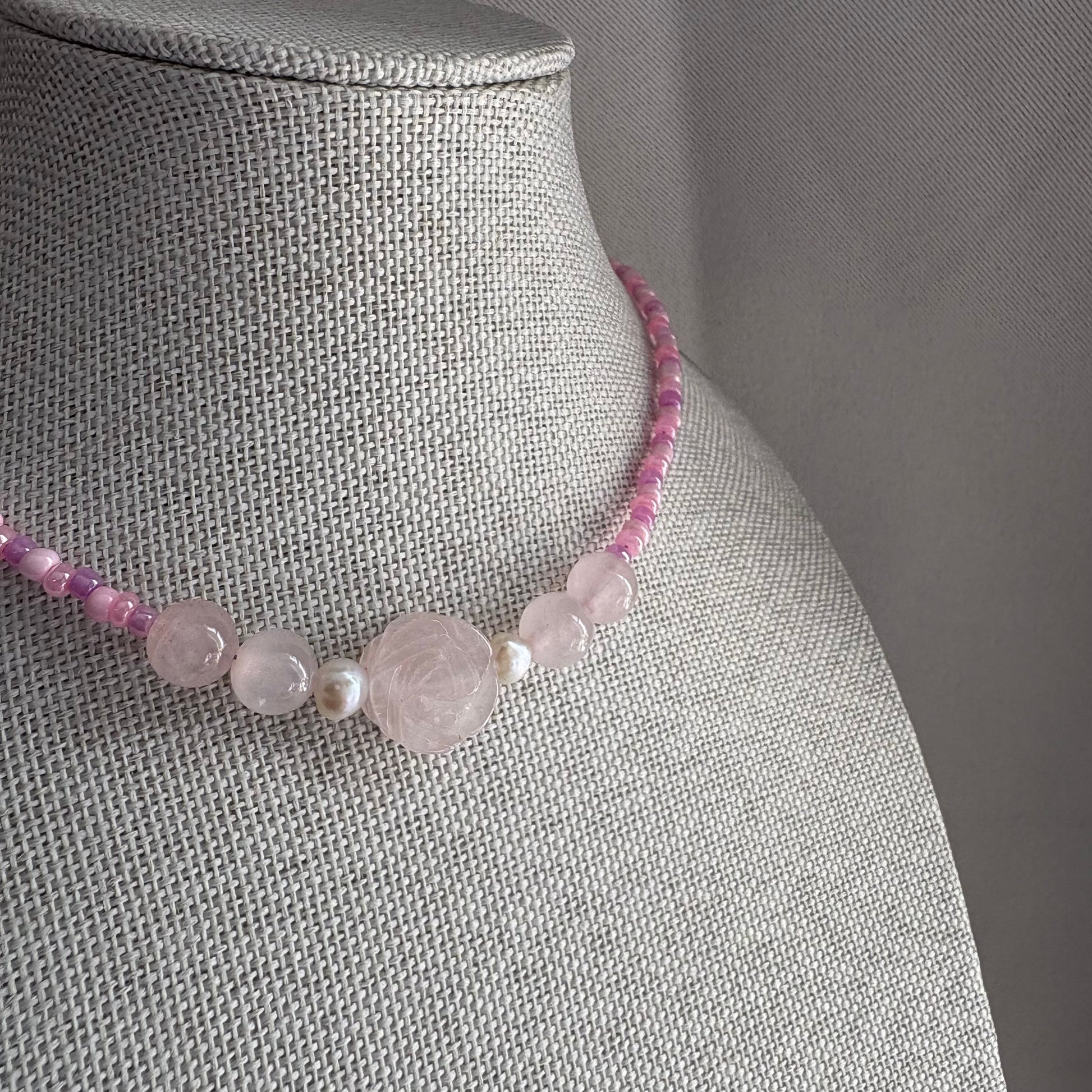 Add some pop to your jewelry collection with our handmade pink beaded rose quartz crystal choker necklace. This cool piece features a stunning rose quartz bead in the shape of a rose, with the added bonus of hypoallergenic extendable chain. A playful, quirky addition to any outfit.